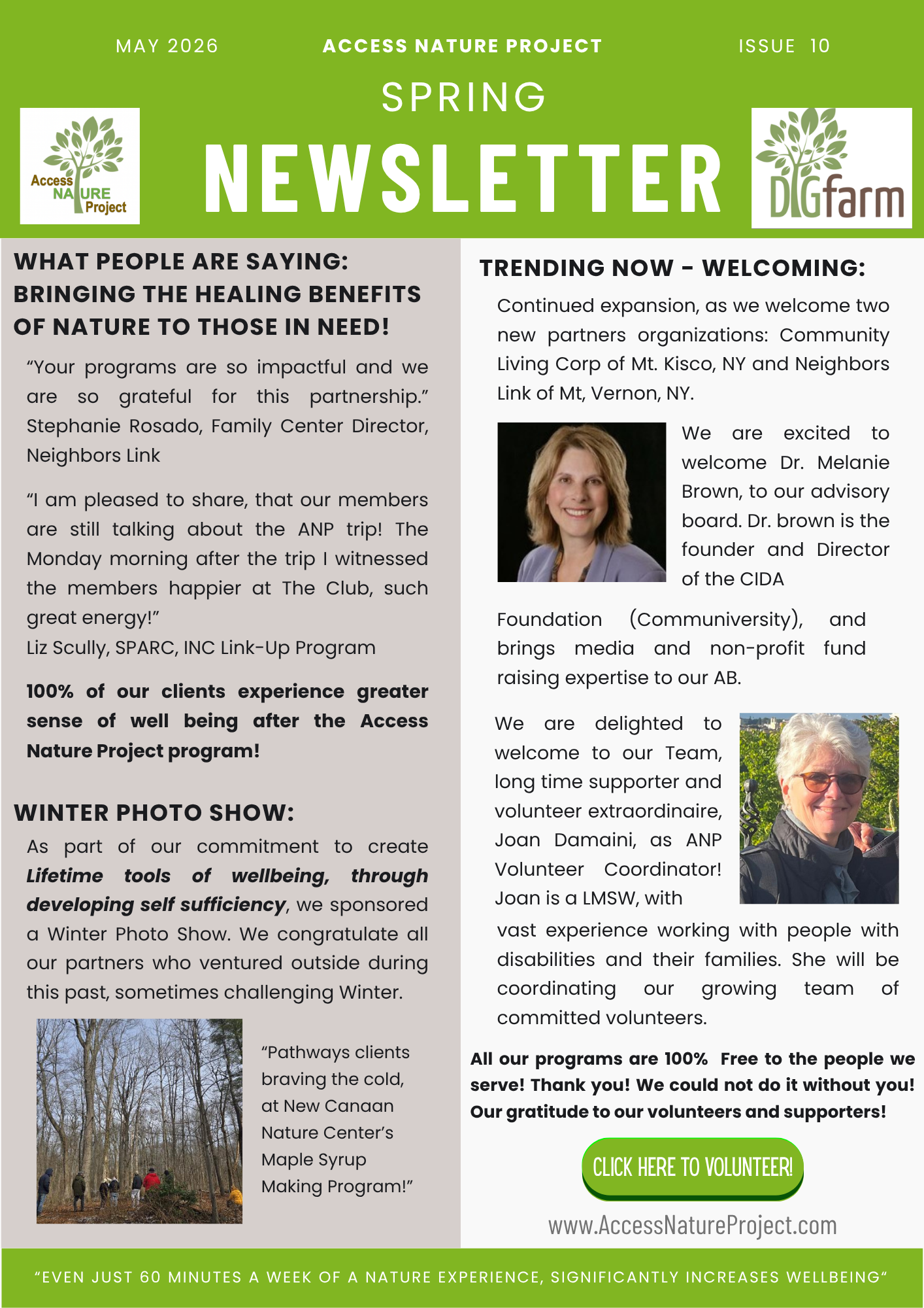 The Access Nature Project provides opportunities for involvement through regional community programs from April to November. Contact us to discuss starting a program for your group or to learn how to incorporate our programming into your outdoor organization.